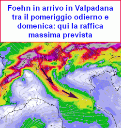 EVOLUZIONE: domenica il fronte si sarà ormai allontanati su est europeo e Balcani e per il tempo dell’Italia risulterà determinante l’azione stabilizzante di un cuneo anticiclonico in arrivo da ovest. Un fronte caldo in arrivo sul centro Europa pertanto verrà indebolito sensibilmente da questo rialzo pressorio e la circolazione da nord favorirà ancora episodi di FOEHN molto mite in Valpadana con temperature che potranno risalire localmente oltre i 21-22°C.