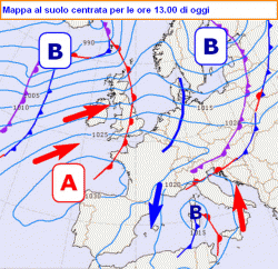 EVOLUZIONE: il minimo di pressione tende ad isolarsi dalla circolazione principale e andando a perdersi sui nostri bacini di ponente, fino a dissolversi giovedì sul nord Africa. Al suo seguito una vigorosa pulsazione della Corrente a Getto andrà a gonfiare un campo anticiclonico piuttosto robusto, che dal basso Atlantico svilupperà un asse verso l’Europa occidentale, ripiegando poi anche sull’Italia.