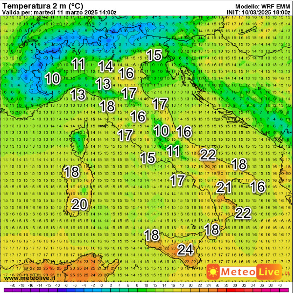 Queste sono le temperature attese in Italia alle ore 15 di martedi 11 marzo:
