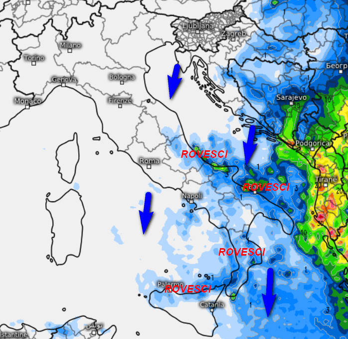 Al nord residui rovesci sul Friuli, ma con tendenza a miglioramento, altrove cielo in prevalenza sereno. Rovesci saranno possibili tra il Lazio, il sud dell’Umbria, ma soprattutto tra Marche e Abruzzo. Rovesci a macchia di leopardo anche al sud, ad eccezione del sud della Sicilia e del settore ionico. Rotazione del vento dai quadranti settentrionali e temperature in moderato calo segnatamente al centro-sud, in aumento invece al nord.