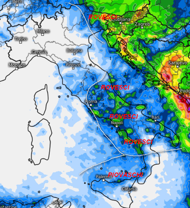 Questa invece è la sommatoria delle precipitazioni attese in Italia nell’arco della giornata di martedi 4 novembre: