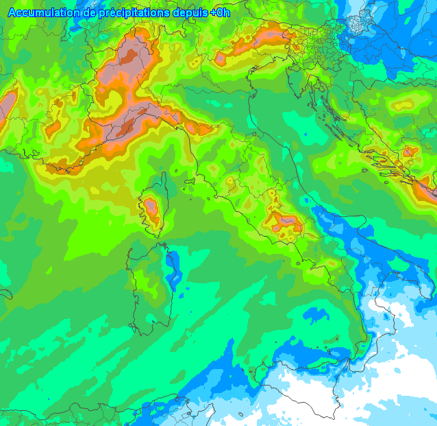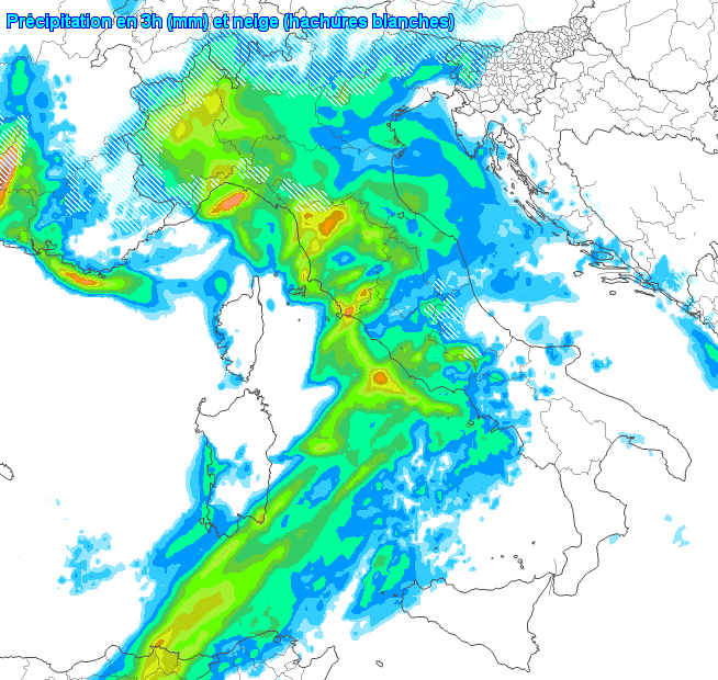 Domenica 10 invece le precipitazioni appaiono ancora più sorprendenti e copiose, soprattutto sui versanti tirrenici e sul nord-ovest: