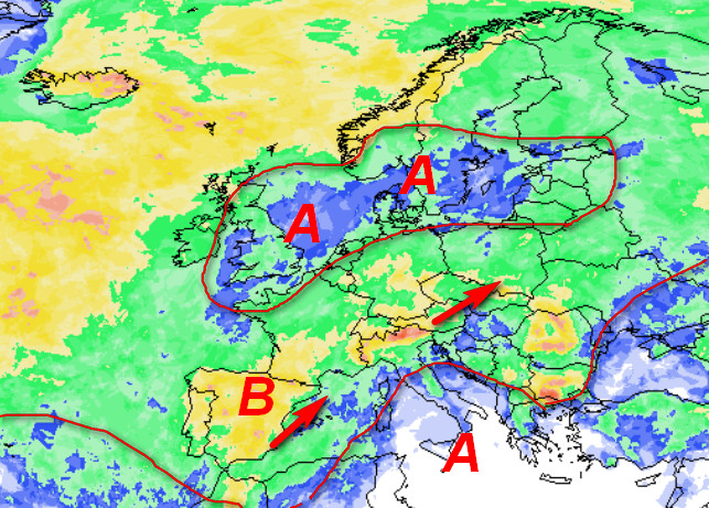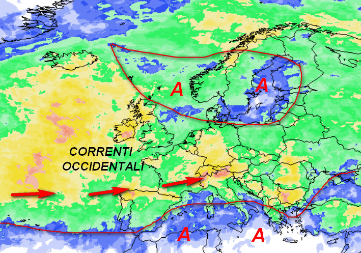 Notiamo come l’alta pressione che incombe sul nostro Continente ormai da un mese e mezzo, tenda a spezzarsi in due tronconi: il primo isolerà un massimo sulla Scandinavia, mentre il secondo verrà assorbito dal quartier generale africano, estendendo però un lembo verso il settori più meridionali del Mediterraneo. Questa situazione dovrebbe garantire piogge di un certo peso al settentrione, con coinvolgimento delle aree interne dell’Italia centrale. Sul resto d’Italia la probabilità di pioggia sarà più bassa e sarà possibile avere anche un po’ di caldo, specie al meridione ed in Sicilia.