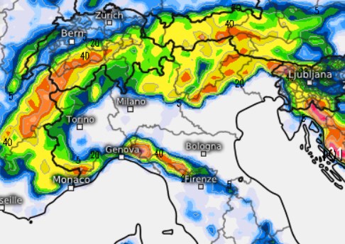 Considerando le correnti occidentali, le piogge più intense colpiranno soprattutto il versante tirrenico, le aree interne del centro e alcuni settori del settentrione, specie Liguria di levante e alta Toscana, dove potrebbero verificarsi anche dei nubifragi.
