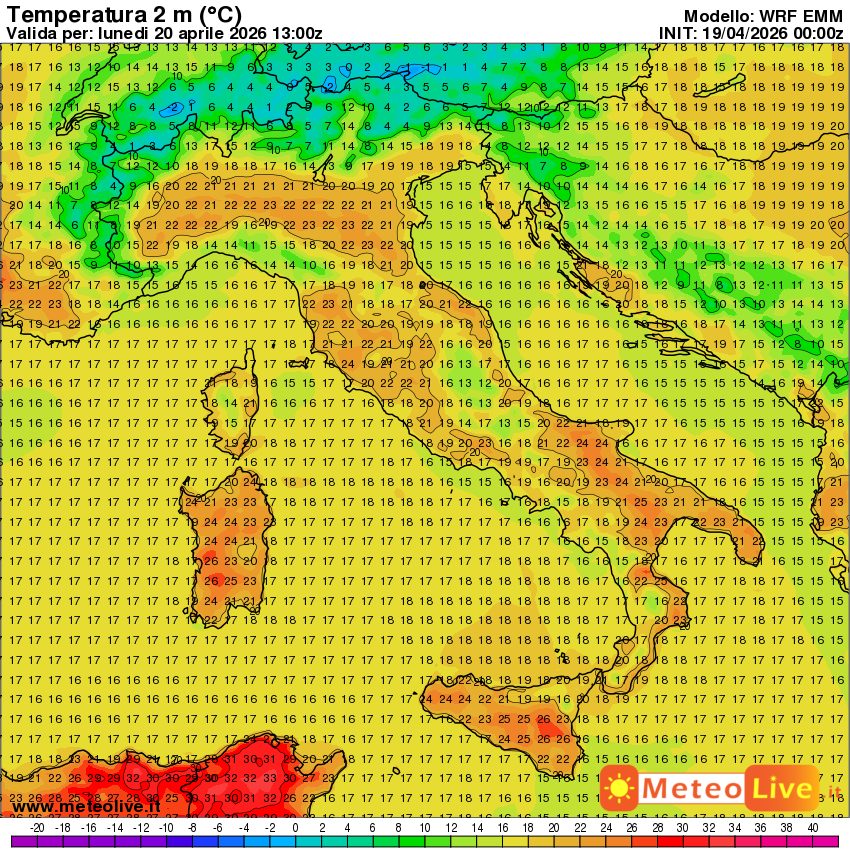 Nel corso di questo lunedì avremo un calo di 2-4°C su molte regioni, da nord a sud, ma tutto sommato le temperature resteranno gradevoli. Spuntano punte di 22-23°C da nord a sud, anche più su in Sicilia e Sardegna. Le temperature di lunedì pomeriggio: