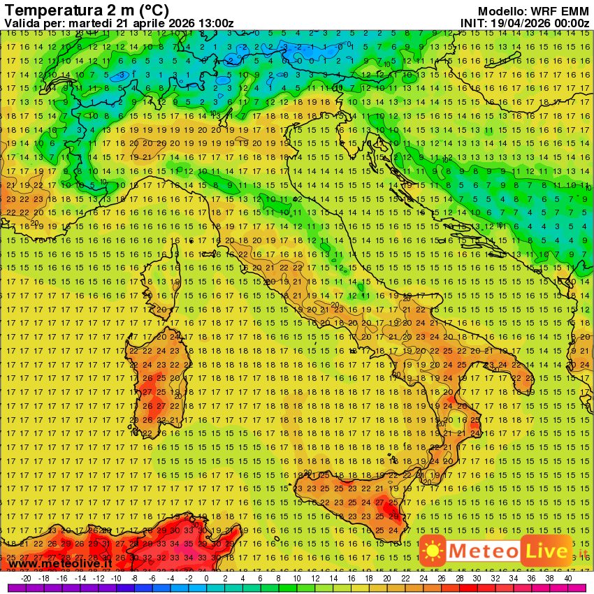 Martedì avanzerà aria ancor più fresca, sotto la spinta dei venti di bora e tramontana, che invaderà principalmente il medio-alto Adriatico. Le temperature di martedì pomeriggio: