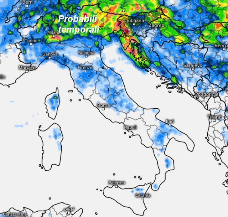 Le regioni settentrionali, al contrario, saranno maggiormente esposte al flusso di correnti leggermente più instabili in quota. Questo scenario favorirà lo sviluppo di rovesci e temporali sparsi, in particolare su Alpi, Prealpi e sul Triveneto, ma anche sulla Pianura Padana a nord del fiume Po nel pomeriggio-sera.