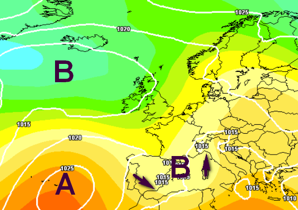 Dopo la scaldata di fine mese ecco una nuova saccatura penetrare da ovest, determinando precipitazioni.