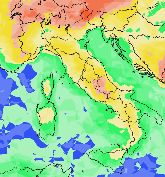A livello di temperature, la conferma del calo termico ci viene da questa mappa, che evidenzia dove saranno più probabili valori superiori ai 10°C a 1500m per venerdì 3 maggio, praticamente solo sulla Puglia, a testimonianza di un calo termico generale importante: