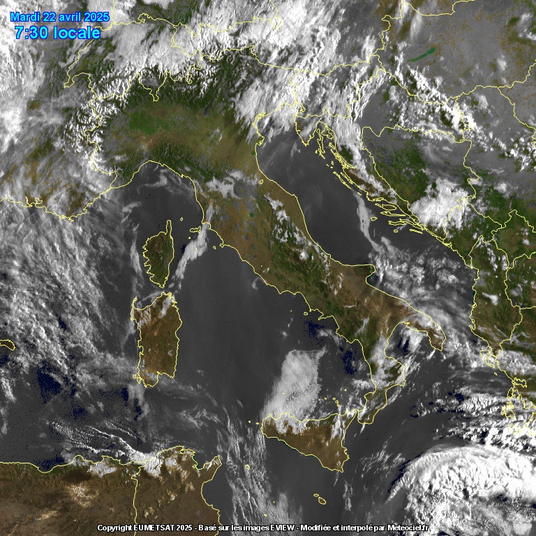 Martedi 22 e mercoledi 23 aprile rischio acquazzoni o brevi temporali nelle aree interne del centro e su parte del settentrione, in attesa di un impulso freddo che attraverserà l'Italia nella giornata di giovedi.