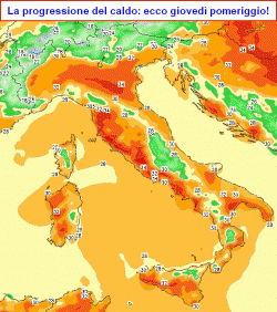 Le termiche in quota in ogni caso non raggiungeranno valori eccezionalmente elevati, ma saranno comunque sufficienti, in combinazione con il cemento presente nelle grandi aree urbane, per far schizzare verso l’alto le temperature massime e per conservare il calore anche nottetempo.