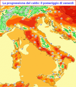L'anticiclone subtropicale nuovamente alla conquista dell'Italia. Farà sempre più caldo, specie al nord e al centro. In pole position per le alte temperature Emilia, Toscana, Lazio, Campania, Sardegna, Lombardia e Veneto, in seguito anche la Puglia. Tra domenica e lunedì qualche breve temporale nelle Alpi, per il resto ancora tanto sole e caldo sino a venerdì 9 agosto, quando si predeve un intenso passaggio temporalesco al settentrione.
