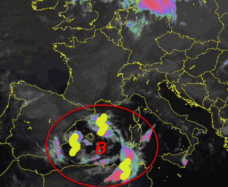 La perturbazione che nella giornata di ieri (lunedi 7) ha determinato temporali anche intensi al nord, come era nelle attese è sprofondata ad ovest della Sardegna e ha determinato la nascita di una circolazione ciclonica chiusa che in gergo tecnico viene definita GOCCIA FREDDA. La vediamo in bella mostra nelle immagini satellitari di questa mattina: