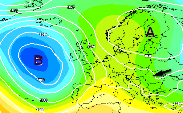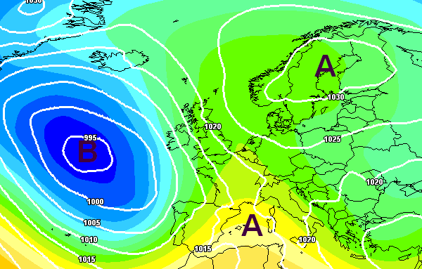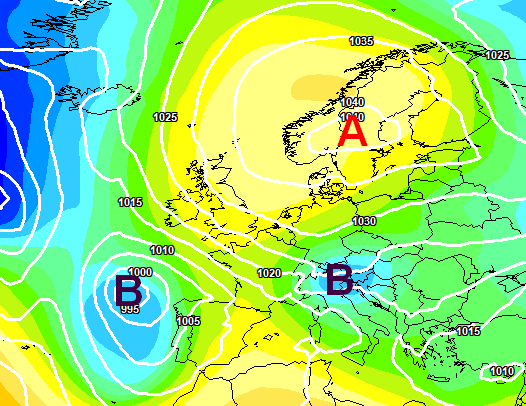 Ci sarebbe anche qualche risvolto nevoso a carattere sparso, con rovesci che se andasse così potrebbero coinvolgere anche le zone pianeggianti, vediamo anche lo schema barico generale: