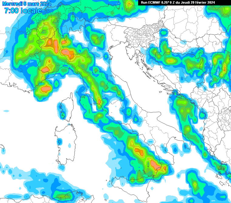 Tutto molto interessante ma quanto è credibile? Cominciamo ad esporre le mappe del modello europeo, poi faremo un confronto. Ecco il passaggio perturbato del 6-7 marzo con doppia immagine:
