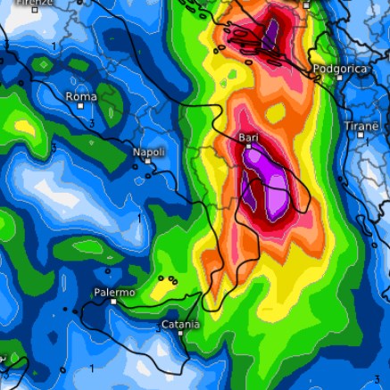 Secondo i modelli GFS e GEM il sud e in particolare la Puglia (ma in parte anche il Molise), potrebbero essere colpiti da piogge particolarmente abbondanti tra venerdì 4, sabato 5 ottobre e domenica 6 ottobre, con accumuli anche superiori ai 100mm e con conseguenze pesanti sul territorio.