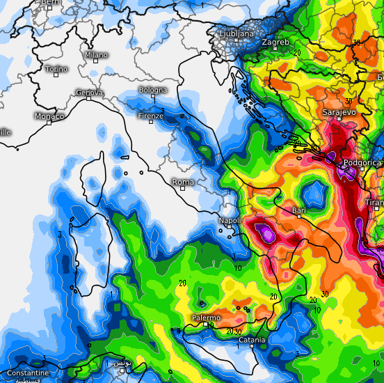 Il tutto scaturirebbe dalla costante presenza di un canale depressionario sull’Italia, a cui andrebbe ad aggiungersi la presenza proprio di un minimo depressionario al suolo a ridosso della Puglia.