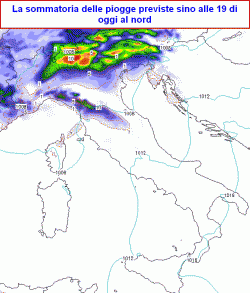 OGGI: al nord molto nuvoloso con piogge e rovesci, anche forti su Lombardia e Triveneto, più sporadici a sud del Po, possibili temporali in Liguria, limite della neve oltre i 1400-1700m sul settore alpino centro-occidentale, 1700-2100m sulle Alpi orientali. Al centro nubi e rovesci sparsi sulla Toscana, specie a ridosso delle montagne. Nuvolaglia sul resto del centro ma con fenomeni sporadici ed isolati e schiarite favoniche sul medio Adriatico. Bel tempo e caldo al sud.