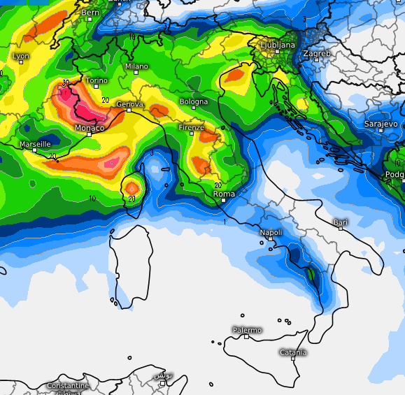 Questi passaggi da ovest verso ovest si ripeterebbero per alcuni giorni, con precipitazioni più probabili al nord e al centro, come vediamo da questa mappa, ma che a tratti potrebbero coinvolgere anche il resto del Paese: