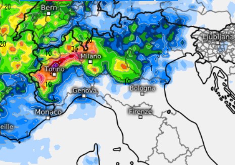 Le città più probabilmente coinvolte dalle piogge saranno quelle a nord del fiume Po, quindi Torino, Biella, Verbania, Novara, Milano, Como, Varese, Lecco, Bergamo, Sondrio, Brescia, Verona e Padova. Rischio più basso a Genova, Cremona, Mantova.