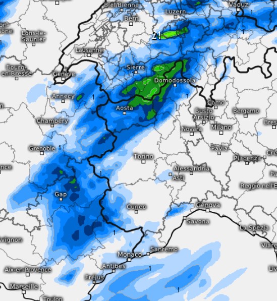 Sono infatti attesi alcuni BREVI acquazzoni o BREVI temporali nel pomeriggio-sera di sabato sulle Alpi e Prealpi fra cuneese, Torinese, alto Biellese e Verbano (molto probabilmente NON interessata la città di Torino), passando anche per gran parte della Valle d’Aosta. In Valle d’Aosta possibili brevi rovesci di pioggia anche in mattinata, specie in Alta Valle.