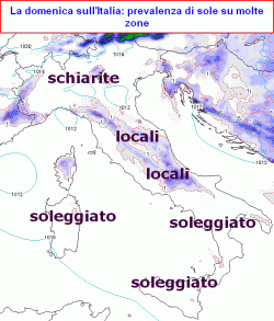 Domenica più sole ovunque, tranne residue piogge su zone confinali altoatesine e locali rovesci pomeridiani su dorsale appenninica centro-settentrionale, Alpi occidentali e nord-est. Lunedì nuovo afflusso di aria fresca in quota e qualche temporale tra nord-est, Romagna, regioni centrali, nuvolaglia sul resto del nord. Martedì e mercoledì residue condizioni di instabilità, poi bel tempo sino a domenica 9 giugno e clima progressivamente più caldo, specie al centro-sud.