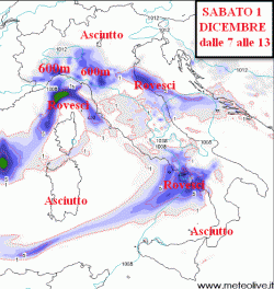Più a sud, tenaci acquazzoni colpiranno ancora la Campania, estendensosi in parte al Molise e alla Puglia Garganica. Per il resto il tempo si presenterà asciutto o con precipitazioni di poco conto.