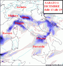 Questa invece è la situazione prevista per il pomeriggio odierno, dalle 13 alle 19.