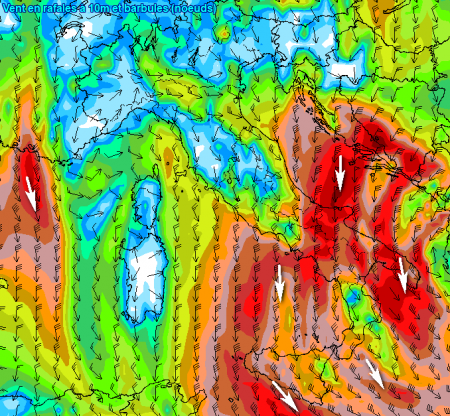 Ecco il momento di massima intensità del vento, prevista per il pomeriggio di sabato 25 novembre: