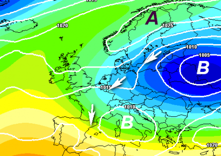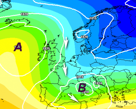Nei giorni successivi l’anticiclone non tornerà a comandare la scena ma sarà ostacolato dal rientro parziale di aria più fredda da est e da nord, che favoriranno la formazione di un nuovo minimo depressionario sul centro Italia, responsabile ancora di tempo instabile al centro e al sud, specie sul Tirreno: