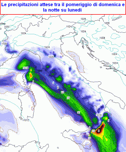 PRECIPITAZIONI: risulteranno abbondanti oggi sulla Sardegna orientale, deboli su Sicilia orientale, settori jonici, molto deboli lungo il medio e basso Adriatico. Domenica fenomeni intensi su est Sicilia, Calabria jonica, moderati lungo tutte le coste del Tirreno, deboli o molto deboli su Cuneese ed Appennino ligure.