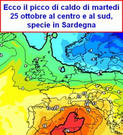 CALDO: l’affogamento della depressione a ridosso dell’Africa occidentale spingerà indirettamente verso l’Italia un cuneo di alta pressione di origine africana a cui sarà associata una bolla di aria calda, che porterà le temperature su valori praticamente estivi sulla Sardegna e, in parte, anche il centro e il sud, clima molto mite anche al nord.