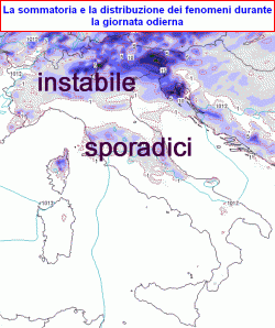 Oggi variabile con rovesci temporaleschi possibili al nord, isolati rovesci al centro. Domenica molto instabile al centro, spunti temporaleschi sul nord-est e più sporadici al sud e al nord-ovest, asciutto in Sardegna. Lunedì ancora instabilità sull'insieme del Paese, specie in Appennino e sulle zone interne e clima gradevole. Martedì instabilità residua. Da mercoledì a sabato al nord variabile con a tratti precipitazioni, al centro-sud velato o parzialmente nuvoloso e MOLTO CALDO.
