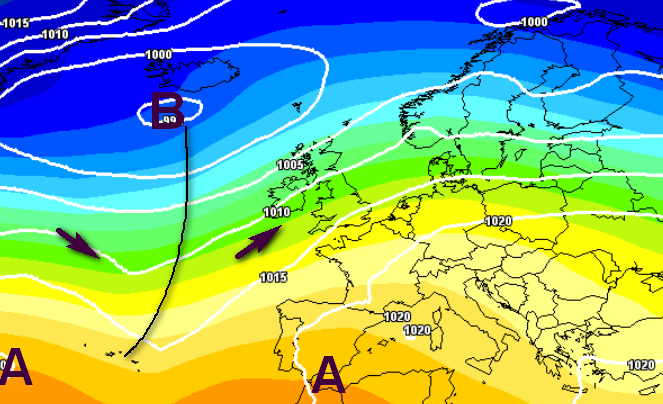 Anche oggi i modelli ipotizzano una sorta di scacco matto all’anticiclone intorno a quella data per l’inserimento di un vortice freddo dall’est europeo, che evolverà in goccia fredda (tanto per cambiare) in grado di minare la stabilità dell’anticiclone, sfondando poi anche ad ovest e favorendo un contatto ad ovest con le correnti perturbate di origine atlantica. La mappa qui sotto, tratta dal modello GFS ipotizza proprio questa evoluzione: