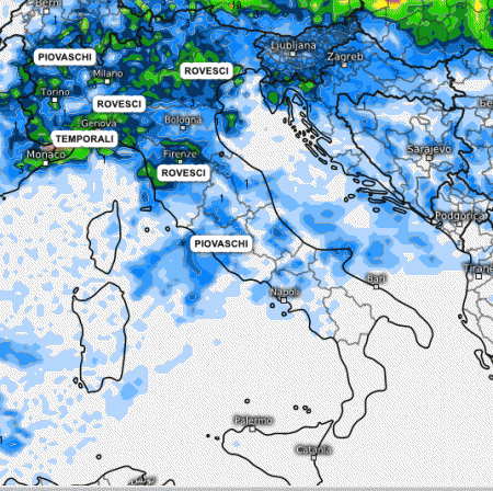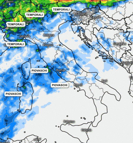 Temporali al mattino sul Golfo Ligure, in attenuazione nel pomeriggio e spostamento verso le altre aree del settentrione anche se più attenuati. Qualche rovescio è atteso anche sulla Toscana e sul Lazio, per il resto nubi in aumento, ma scarsi fenomeni.