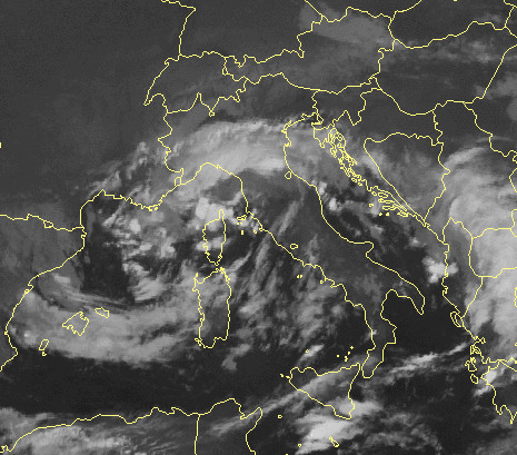Sono gli effetti del vortice ciclonico che si è piazzato al centro del Mediterraneo, come mostra questa immagine satellitare: