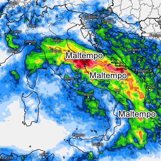 Sono ore di monitoraggio attento per le regioni dell’alto e medio Adriatico che si trovano a fronteggiare una congiuntura barica non bella e foriera di piogge intense ed a carattere continuo, ma il maltempo interessa anche altre zone della Penisola, tra cui la Campania e la Puglia dove nella giornata di ieri si sono abbattuti nubifragi con cumulate piovose anche superiori a 100mm in poche ore.