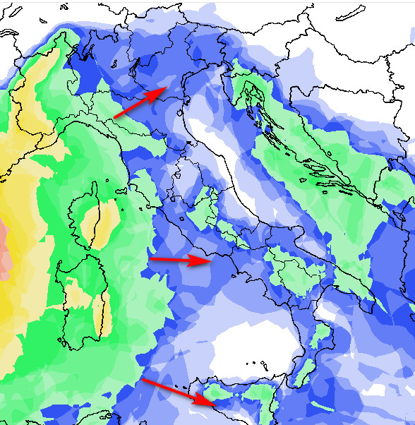 Probabilità di pioggia in aumento ad iniziare dal nord-ovest e dalla Sardegna, ma in estensione verso levante. Secondo gli aggiornamenti odierni, tra domenica 9 e lunedi 10 marzo sembra probabile una fase di maltempo al nord e al centro, ma ovviamente ne riparleremo.