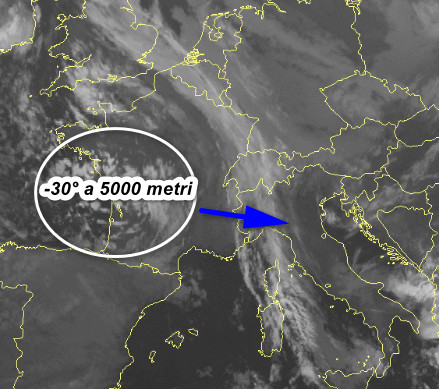 Ecco il nocciolo freddo in procinto di entrare sul nord Italia visto questa mattina dal satellite: