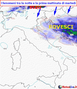 Da notare anche le nevicate da stau orografico sulle Alpi altoatesine di confine oltre i 1000m.
