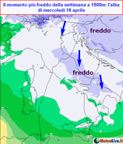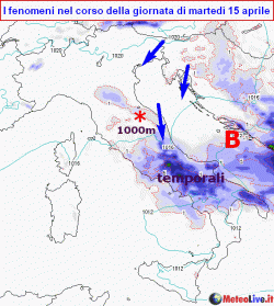 La settimana comincerà con il sole ma una sventagliata di temporali, accompagnati da una massa d'aria fredda, colpirà martedì le regioni centro-meridionali, ma soprattutto quelle del versante adriatico. Atteso il ritorno della neve in Appennino sin verso i 1000m. Mercoledì mattina il momento più freddo, ma l'instabilità su medio e basso Adriatico si rinnoverà sino a giovedì. In seguito tempo migliore, ma tra Pasqua e Pasquetta possibile instabilità al nord e al centro.