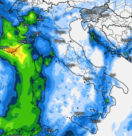 SITUAZIONE: una figura depressionaria, strutturata soprattutto in quota, avanza da ovest con annessa una perturbazione che, nel corso della giornata porterà molte nubi sui versanti occidentali e piogge a ridosso della Sardegna, in graduale estensione entro sera al settore nord-occidentale. Nel frattempo all’estremo sud è presente della nuvolosità irregolare che potrebbe dar luogo a residui rovesci, eredità della precedente situazione perturbata.