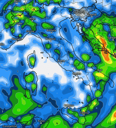 DOMENICA la perturbazione attraverserà quasi tutto il Paese, anche se i fenomeni ad essa connessi si presenteranno più frequenti sui versanti occidentali e sul meridione. Ecco la sequenza descritta molto bene dalle nostre mappe.
