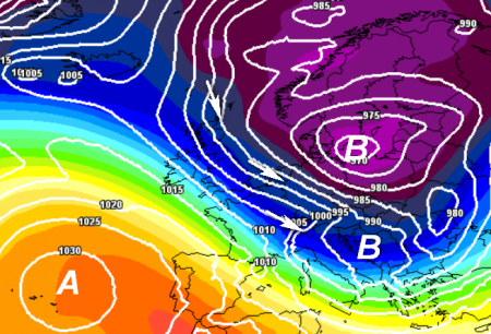 La ricetta del tempo di Natale si riassume in poche mappe: quella qui sopra, prevista per mercoledì 20 dicembre vede l’anticiclone sempre forte, ma defilato ad ovest, consentire qualche disturbo da nord-ovest senza grosse conseguenze, solo un po’ di variabilità.