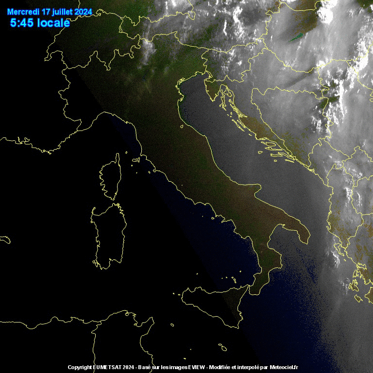 La retroguardia della perturbazione che nella giornata di ieri ha lambito i settori alpini con qualche temporale, determina questa mattina qualche addensamento limitato alle regioni settentrionali, ma non vengono segnalati fenomeni. Vediamo subito l’immagine satellitare in movimento che ritrae il tempo in Italia nelle ultime ore: