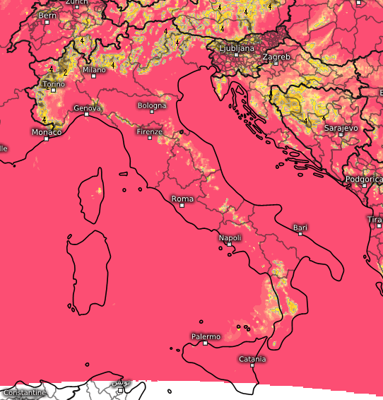 Sul fronte delle temperature, questi sono i valori previsti in Italia alle ore 16 di questo pomeriggio: