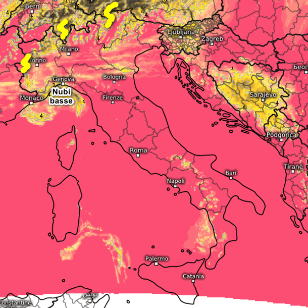 Nubi basse saranno possibili sulla Liguria al mattino, in attenuazione durante il pomeriggio. Nubi anche sulle Alpi, occasionalmente associate a qualche temporale di stagione nel pomeriggio-sera, per il resto nessun cambiamento.