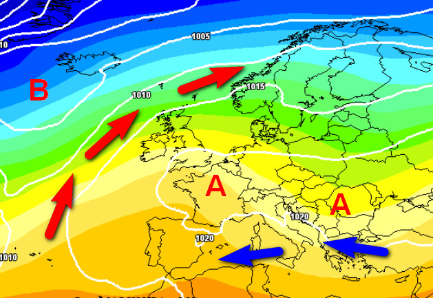 Notiamo una vasta zona di alta pressione che dovrebbe ricoprire l’Europa centrale e gran parte d’Italia, in modo particolare il nord e parte del centro. In questi settori avremo tempo abbastanza stabile e fresco al mattino, con nebbie sulle pianure di notte e al mattino presto.