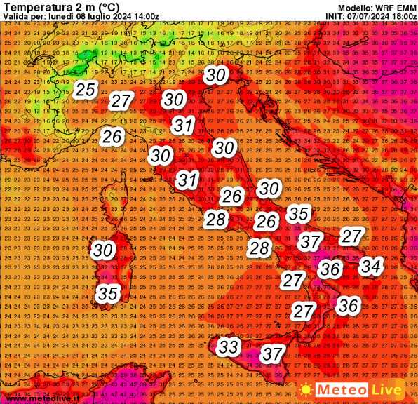 Sul fronte delle temperature, questi sono i valori attesi in Italia nel pomeriggio odierno attorno alle ore 16: