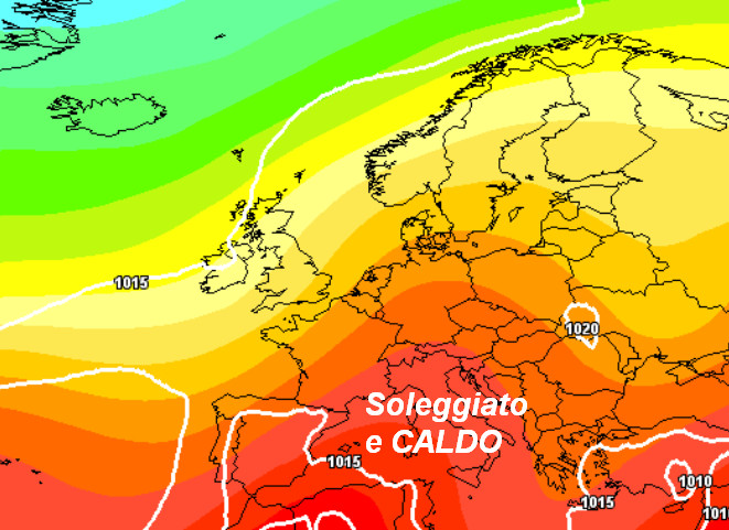 Si nota un solido promontorio anticiclonico africano, ben strutturato e disteso con sicurezza tra il Mediterraneo occidentale e il nostro Paese. Questa configurazione sarà garanzia di tempo stabile, ampiamente soleggiato e decisamente caldo ovunque. Le uniche eccezioni potrebbero essere rappresentate da locali e temporanei disturbi pomeridiano-serali sull’arco alpino, fenomeni tipici della stagione calda quando le montagne fungono da “miccia” per i temporali di calore.